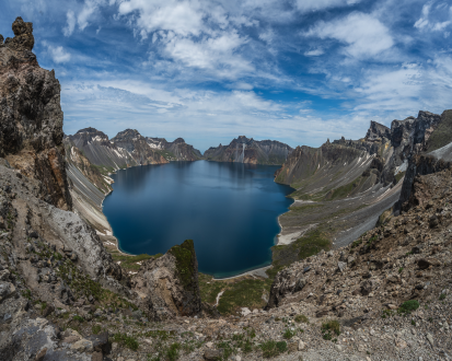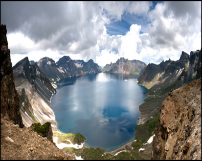 백두산 북파산문→셔틀버스편으로 천문봉 입구→10인승 승합차를 이용하여 천문봉 정상→ 해발 2,670M에서 백두산 천지 감상