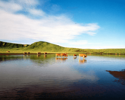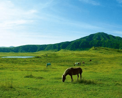 아소산 쿠사센리(草千里 / くさせんり, Kusasenri) 구마모토현 아소산 지역에 위치한 아소를 대표하는 광활한 초원지대입니다. ‘쿠사(草)’는 풀, ‘센리(千里)’는 아주 넓은 들판을 뜻해, **“풀로 뒤덮인 천 리 벌판”**이라는 의미를 가지고 있어요.